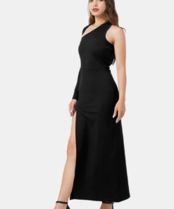 A Seductive Representation Of Grace And Appeal. Its Daring Thigh-High Slit And An Attached Asymmetrical Sleeve Make It Ideal For Birthday Parties And Romantic Dinner Dates. Perfectly Made From The Finest Stretch Polyester.