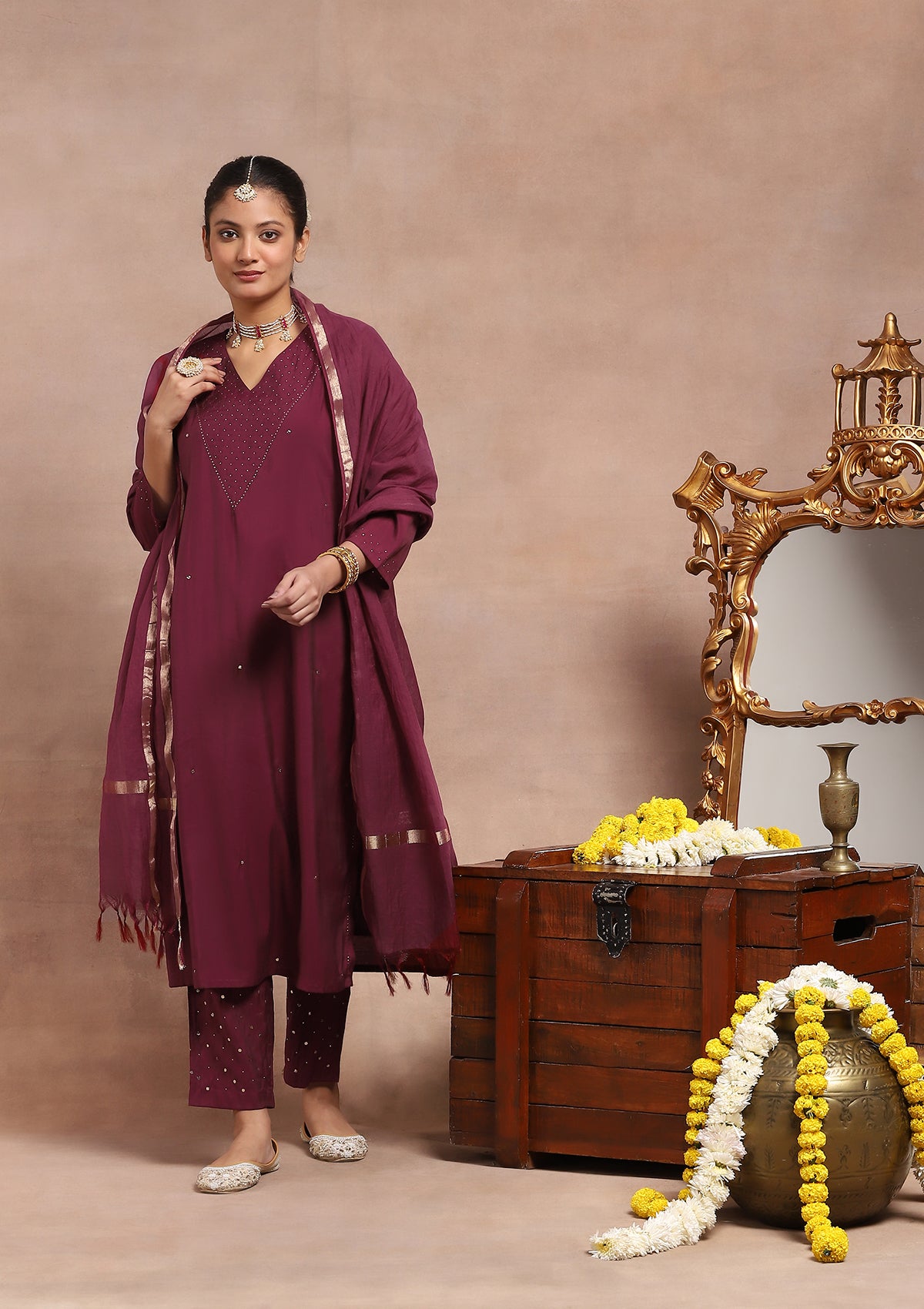 Pantalms Crafts Cotton Aari Embroidered Solid Women’s 3 PC Long Kurta Set – Mustard