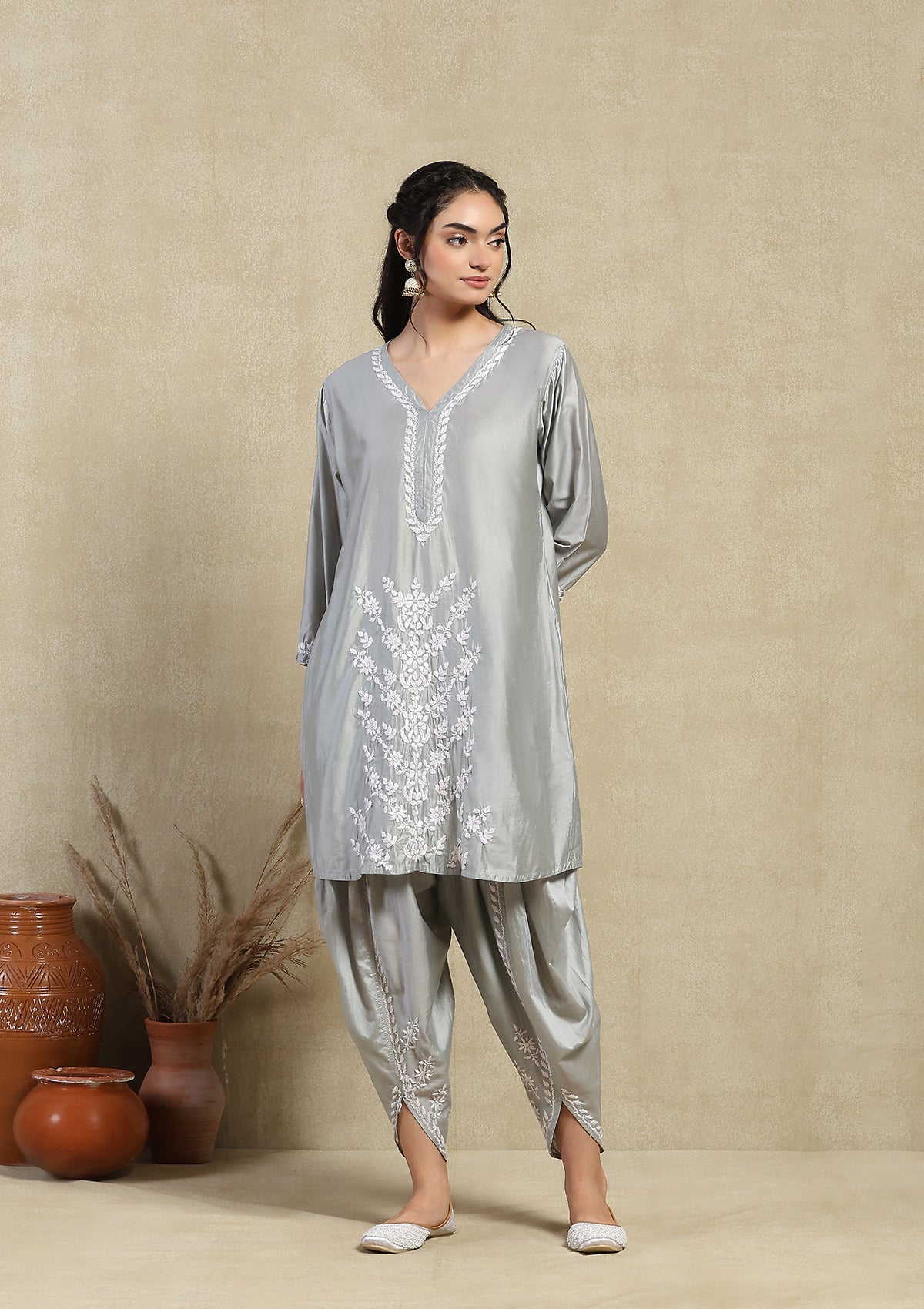 Pantalms Crafts Cotton Aari Embroidered Solid Women’s 2 PC Short Kurta Set – Black