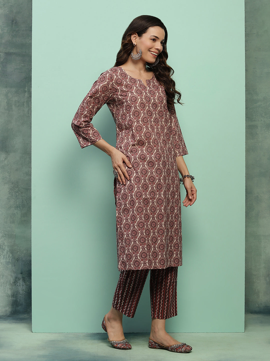 Pantalms Crafts Cotton Aari Embroidered Solid Women’s 3 PC Long Kurta Set – Mustard