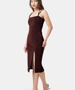 In Our Streamlined And Understated Party Dress. A Modern And Elegant Appearance Is Produced By The Shimmers And Modest Design. The Thigh-High Slit And Figure-Hugging Silhouette Scream Casual-Cool Yet A Flirty Slay. This Dress Guarantees That You’Ll Be The Pinnacle Of Classic Style On Any Occasion, Whether It’S A Cocktail Party Or A Formal Gathering.