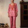 Chanderi Kamdaani Embroidered Solid Women’s 4 PC Long Kurta Set – Pink