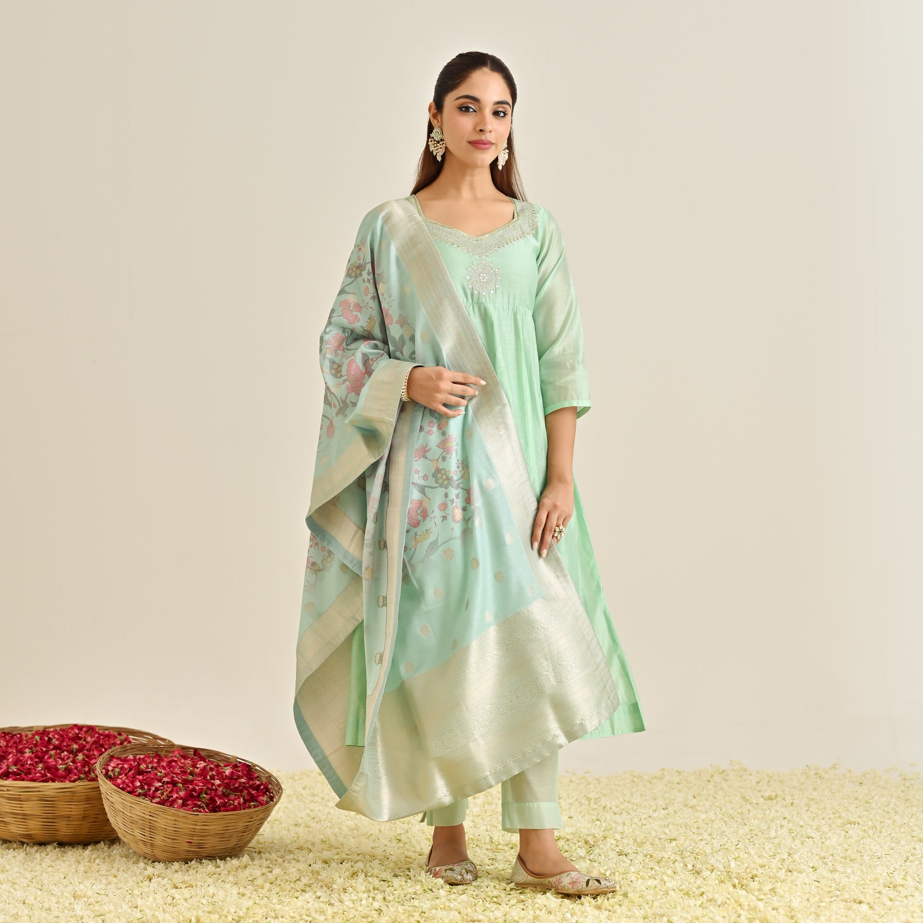 Be the first to review “Mint Festive Anarkali Set with Brocade Dupatta” Cancel reply
