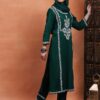 Chanderi Kamdaani Embroidered Solid Women’s 4 PC Long Kurta Set – Pink