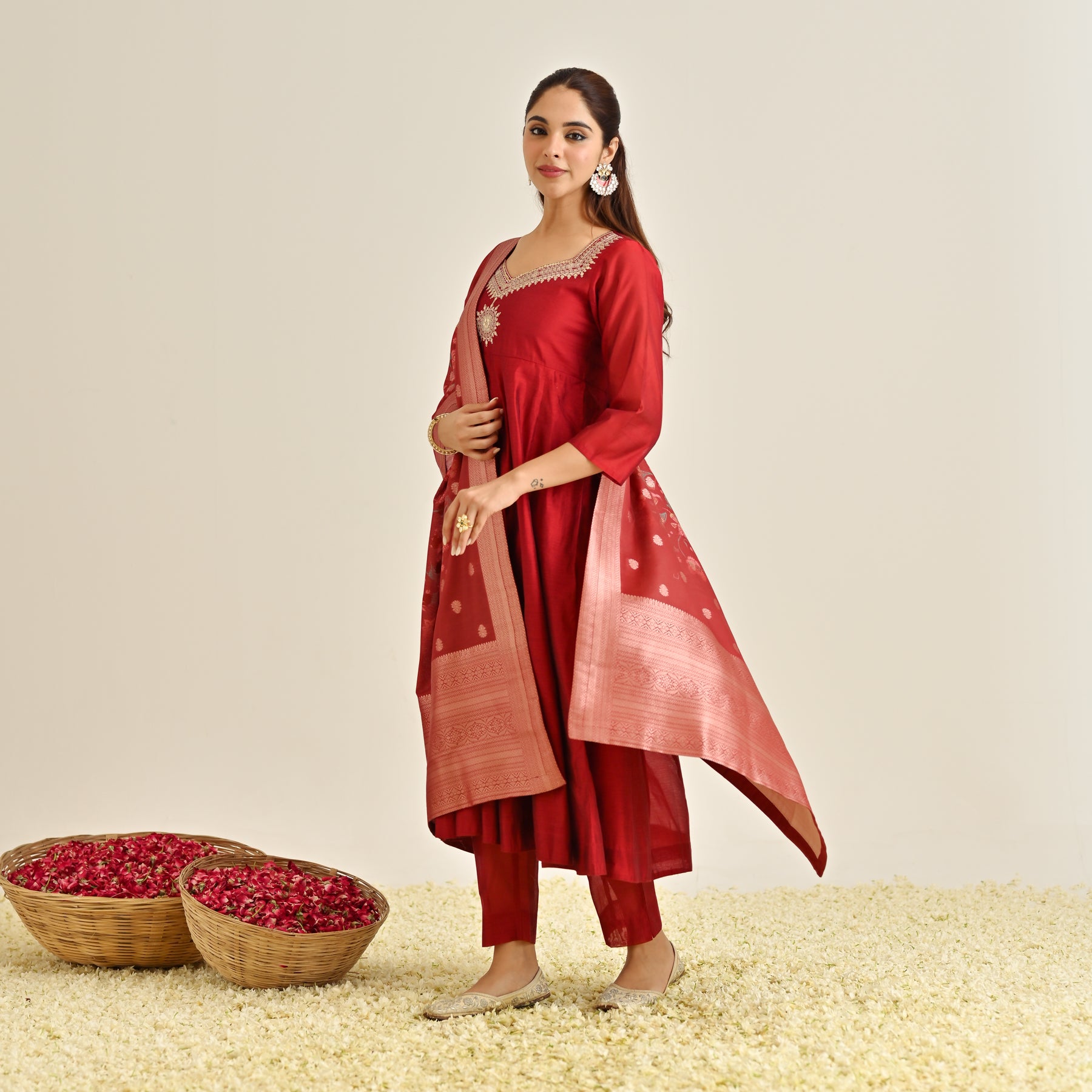 Red Festive Anarkali Set with Brocade Dupatta